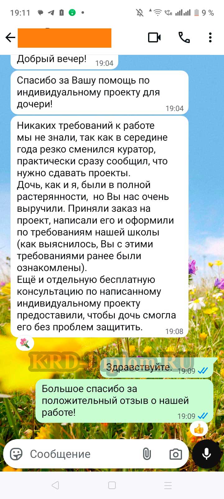 Отзыв о подготовленном индивидуальном проекте для 9 класса